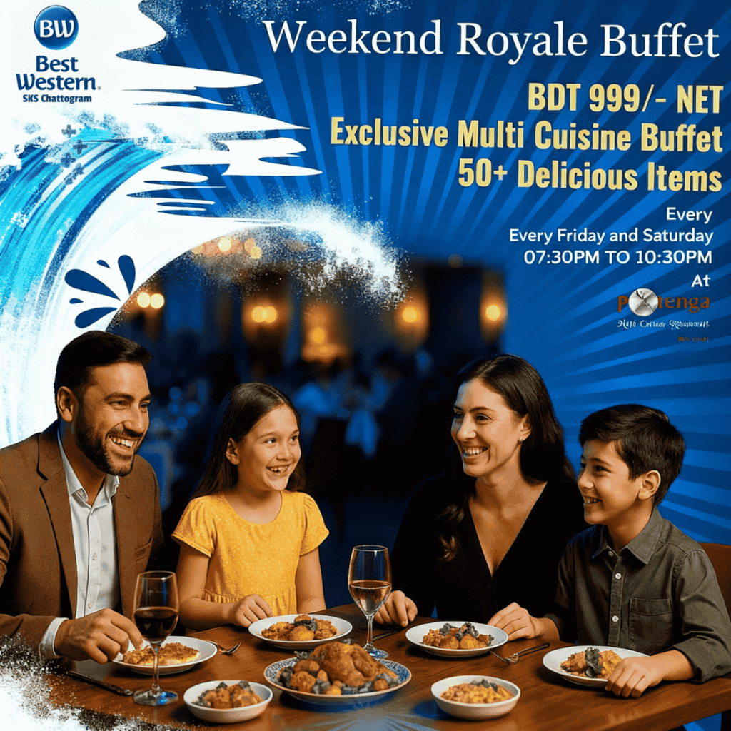 Located in Chittagong’s Agrabad Commercial Area, Best Western SKS Chattogram is the city’s first 4-star international hotel, offering 88 stylish rooms and suites with city, river, sea, or lake views. Guests enjoy premium amenities like Wi-Fi, 4K TVs, welcome drinks, buffet breakfast, gym access, a Thai spa, a BBQ rooftop restaurant, and modern meeting facilities. With easy access to business hubs, tourist attractions, the railway station, the airport, and Patenga Sea Beach, it’s the ideal choice for both business and leisure travelers.