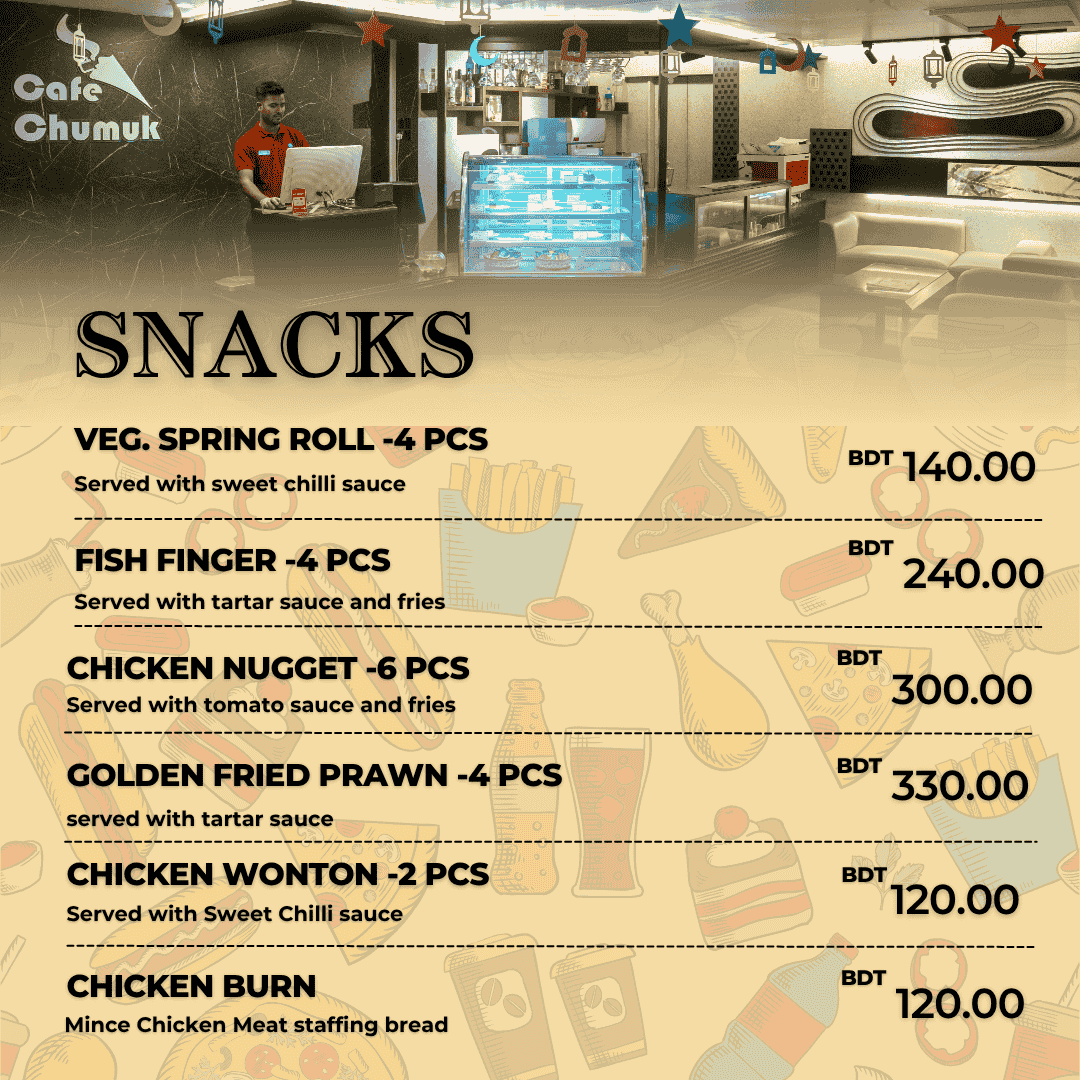 Coffee Chumuk, located in the main lobby, welcome guests to have snacks & coffee. The cafes unique ambiance makes the perfect place for our guests to wake up and wind down. Chumuk cafe located in the ground floor. Through the rest of the day, the Coffee Chumuk continues to serve gourmet teas, coffees and pastries, ice-cream as well as delicious snacks.